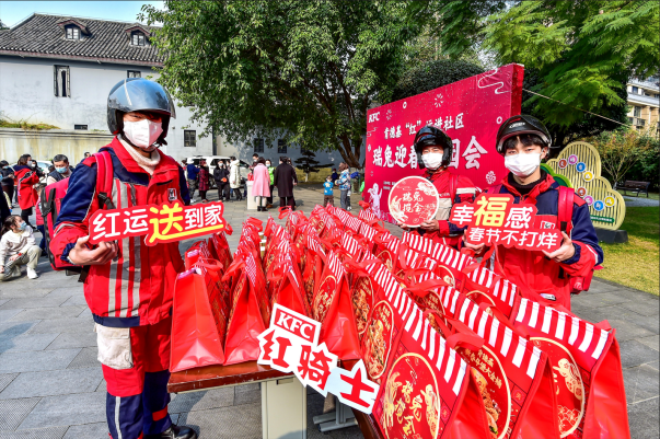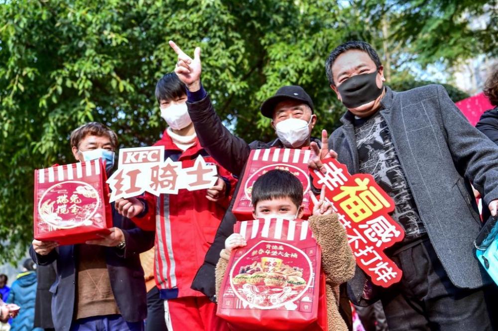 1月10日上午,“肯德基红骑士”满载着充满爱心的大礼包来到周公馆广场,将一份份肯德基特色美食大礼包送到了正在参加新春游园会的居民手中,为有需要的困难家庭送去了暖心的春节问候。