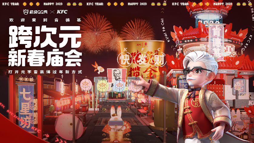 当近在咫尺的邻居因为“肯德基宅急送”社区拼团在新春敲开彼此的门,一起欢聚的同时,钟情于数字化社交的年轻群体,也在连接现实生活与虚拟世界的“元宇宙”因肯德基而欢聚在一起。在新春到来之际,肯德基在超级QQ秀“元宇宙”跨次元新春岛推出大型“元宇宙新春庙会”,创造春节社交活动场景。多种创新玩法加持下,用户不再有空间与时间的限制,可以为任何地方的“元宇宙”好友串门送“福”字,或是为彼此燃放喜庆的烟花,将美好传递给更多人。深谙跨次元年轻消费群体喜好的肯德基,用趣味玩法包装春节传统习俗,跨越空间为更多消费者创造欢聚场景,一起感受新春快乐。