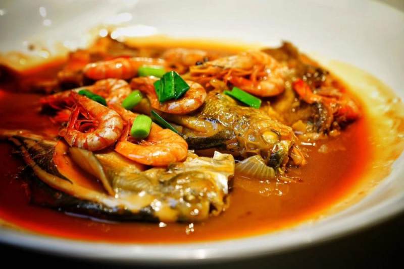 红烧杂鱼拼盘:空运而来的各种海鱼和虾混搭,肉质新鲜、细嫩,汤鲜味美、原汁原味,分量很足。