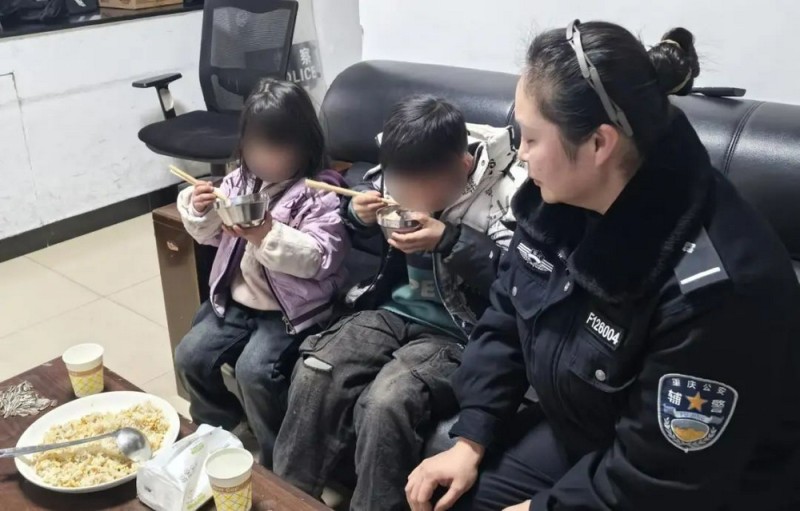 近日,在重庆高新区石板派出所值班室里,10岁的小男孩斌斌(化名)和6岁的妹妹涵涵(化名)一边吃着民警准备的蛋炒饭一边吧嗒着小嘴对着民警说道。此时的派出所值班室内充满了欢声笑语,气氛极为温馨融洽。但就在几个小时前两个孩子还行走在隧道中,让派出所所有值班民辅警们都捏了一把汗。